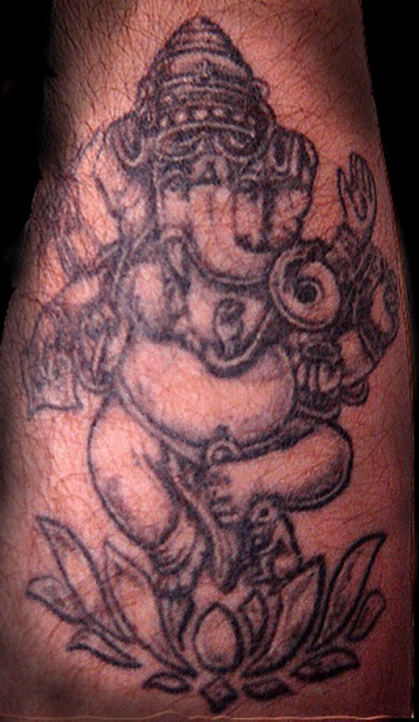 舞蹈的象神莲花黑色纹身图案