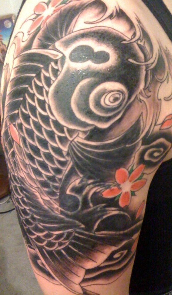 黑色的日式锦鲤纹身图案