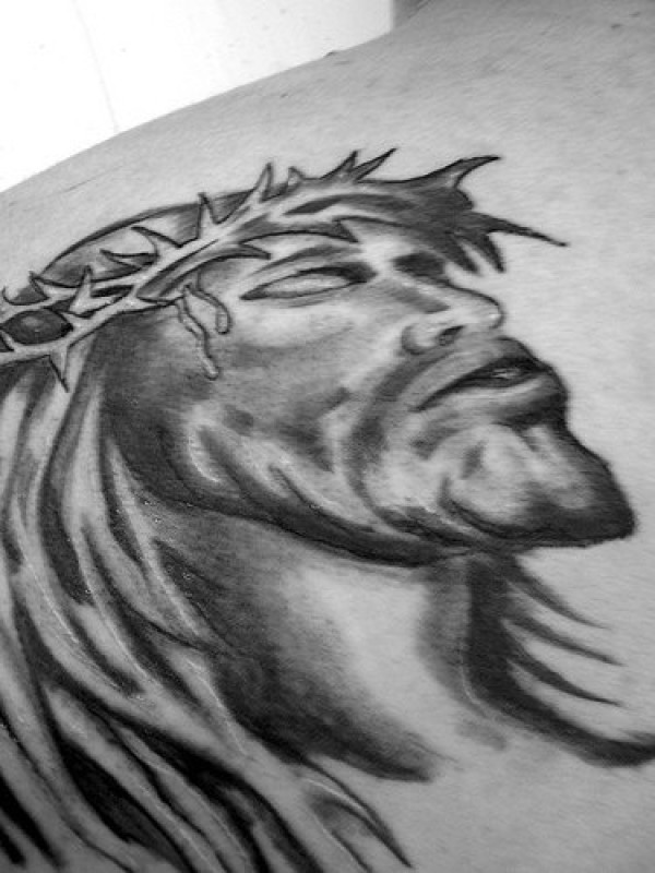 戴荆棘的耶稣黑色纹身图案