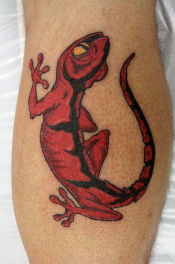 红色和黑色蜥蜴纹身图案