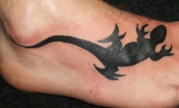 脚背全黑蜥蜴纹身图案