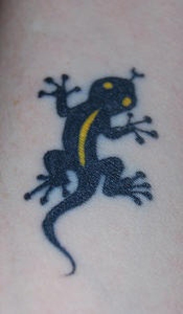 简约的黄色和黑色蜥蜴纹身图案