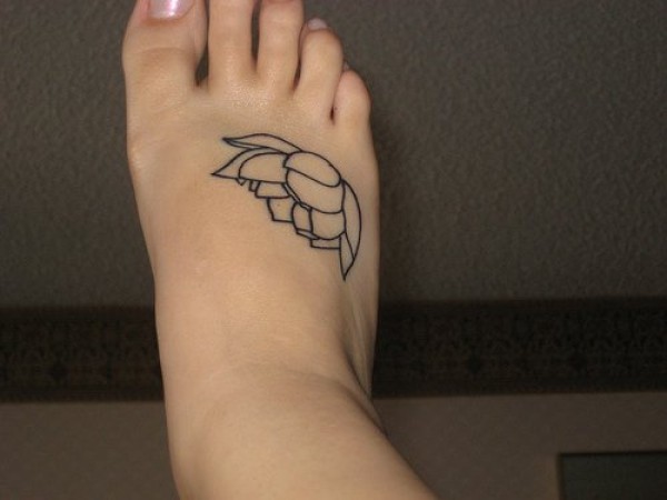 脚背黑色线条莲花纹身图案