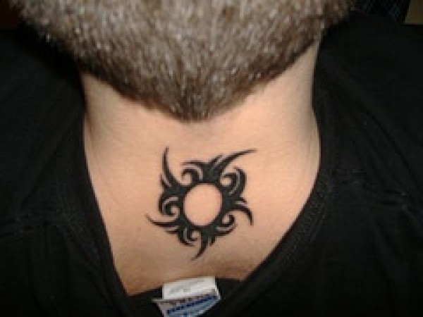 黑色部落太阳颈部纹身图案