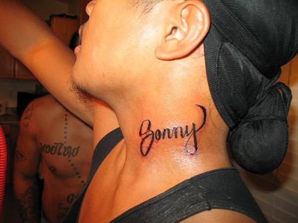 颈部黑色英文名纹身图案