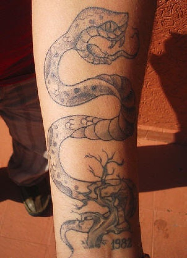 黑灰蛇与枯树纹身图案