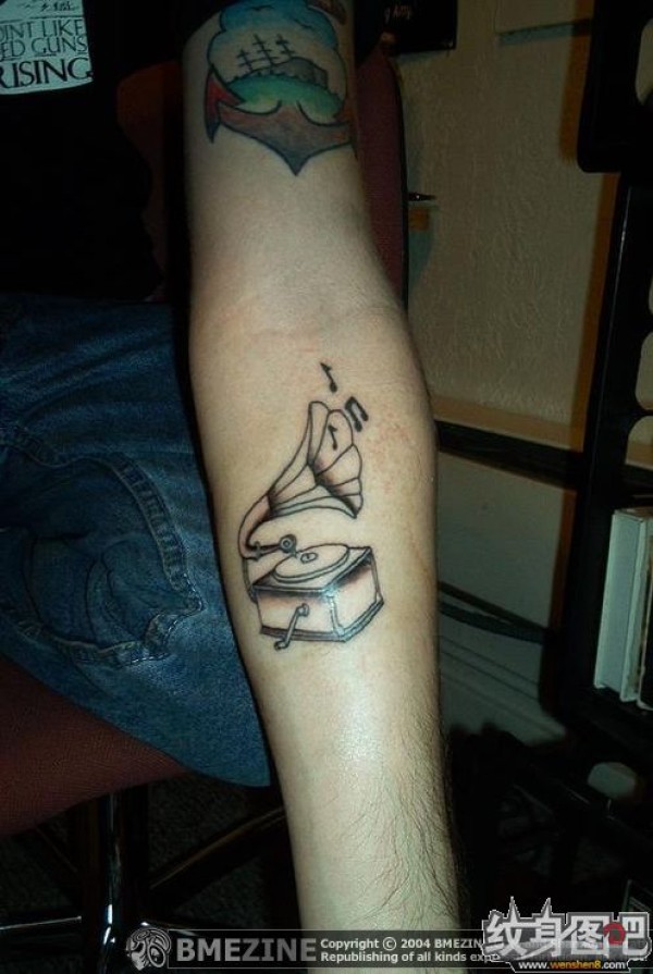 手臂上的留声机纹身