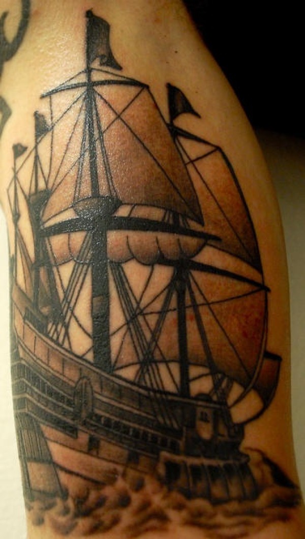 海盗船黑色纹身图案