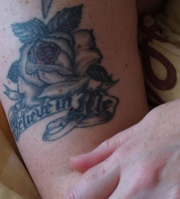 黑色玫瑰与字母纹身图案