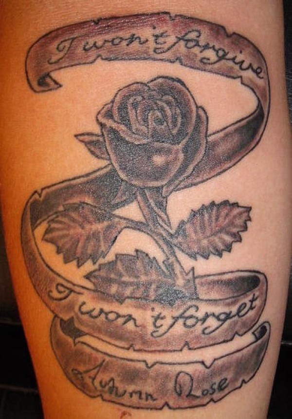 黑灰玫瑰花字母纹身图案