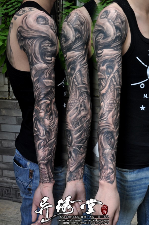 3D黑白花臂 纹身