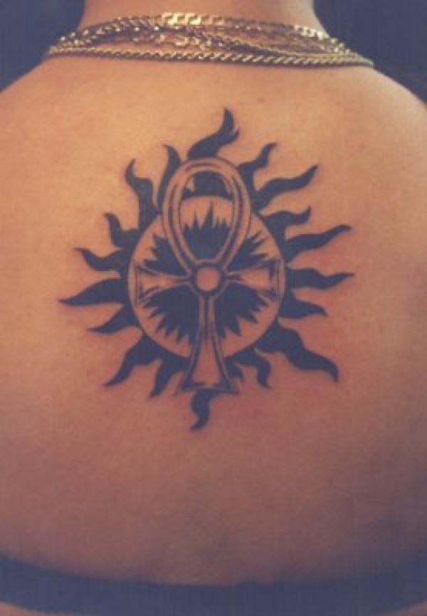 背部黑色太阳十字架纹身图案