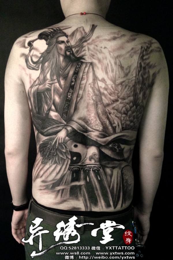满背黑白诸葛亮 纹身