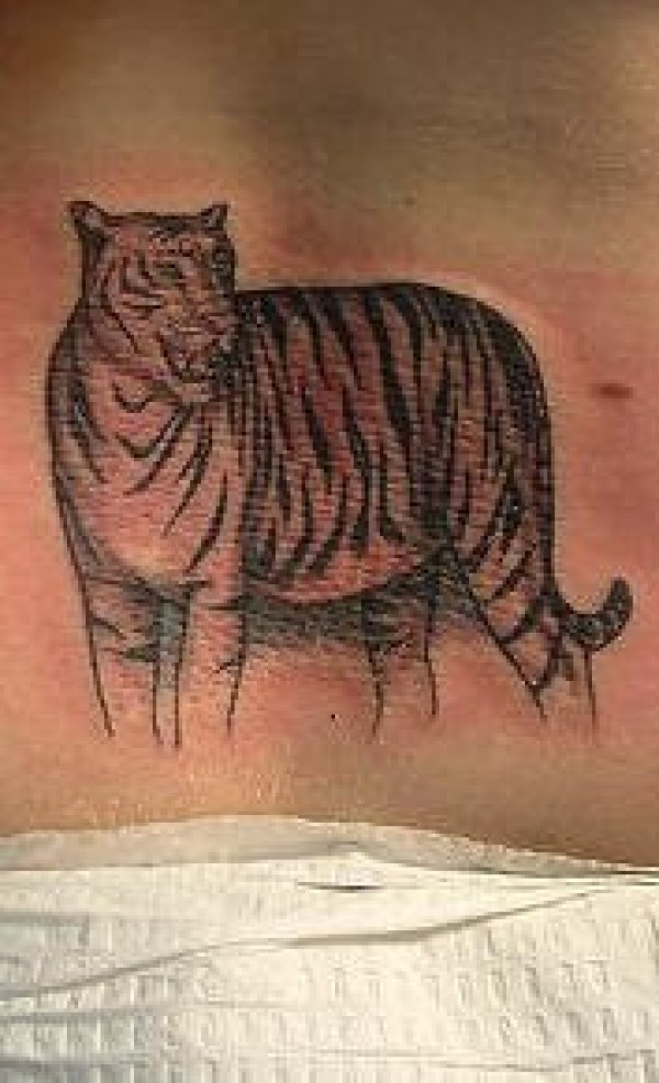 站着老虎黑灰纹身图案