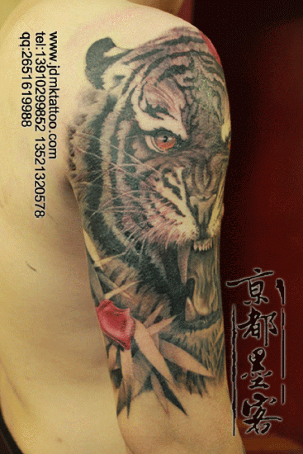 京都墨客纹身作品 包大臂老虎彩色纹身