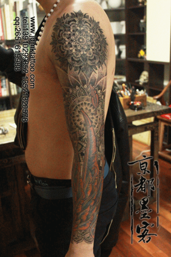 京都墨客纹身作品 包整臂点阵图腾欧美纹身