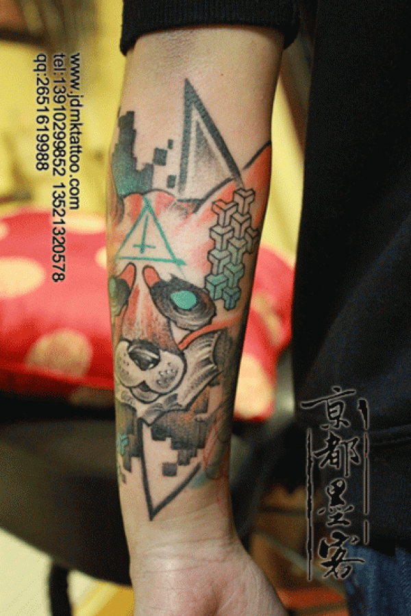 京都墨客纹身作品 小臂new school女孩彩色纹身
