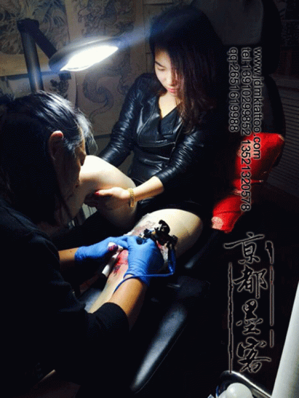 京都墨客纹身作品 女生腿部疤痕遮盖彩色纹身