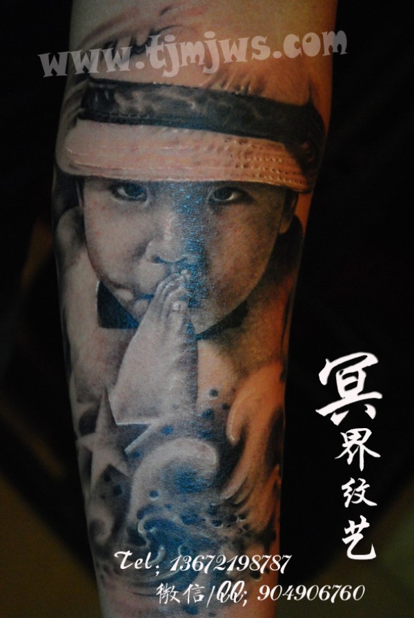 父母把孩子的照片和生日纹在了身上~