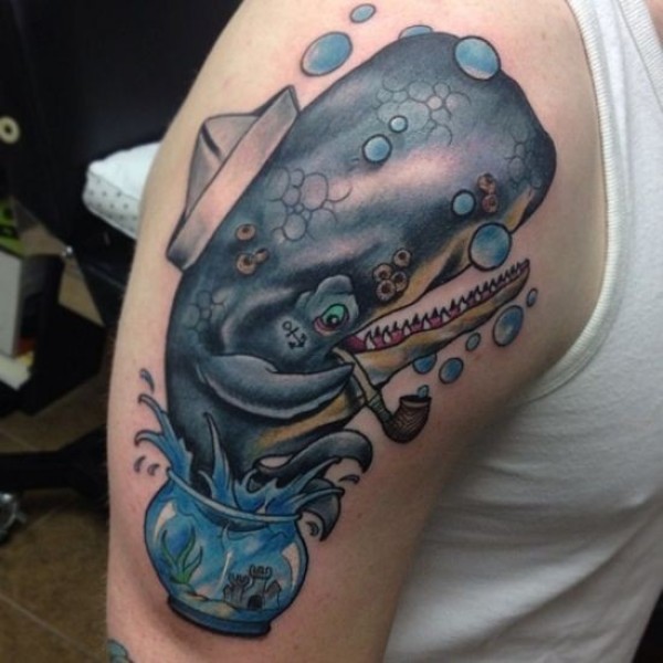new school大臂蓝色鲸鱼纹身图案