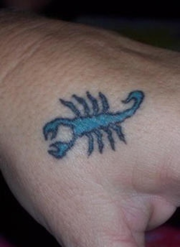 手部蓝色的蝎子纹身图案