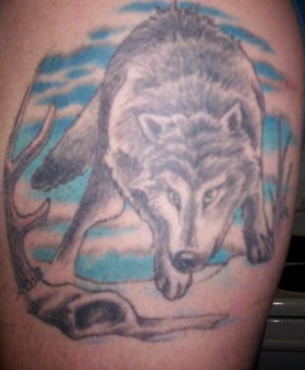 狼与蓝天纹身图案