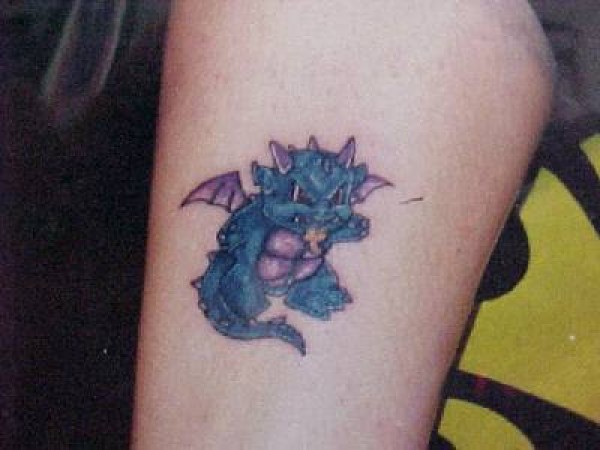 蓝色愤怒的小龙纹身图案