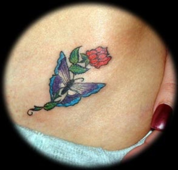 蓝色蝴蝶和红玫瑰纹身图案
