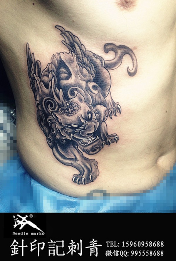 腹部貔貅纹身--福建针印记刺青胡宇作品