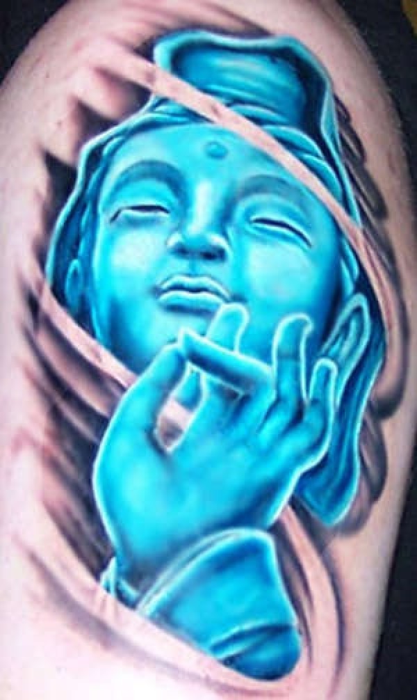 蓝色祈祷佛纹身图案