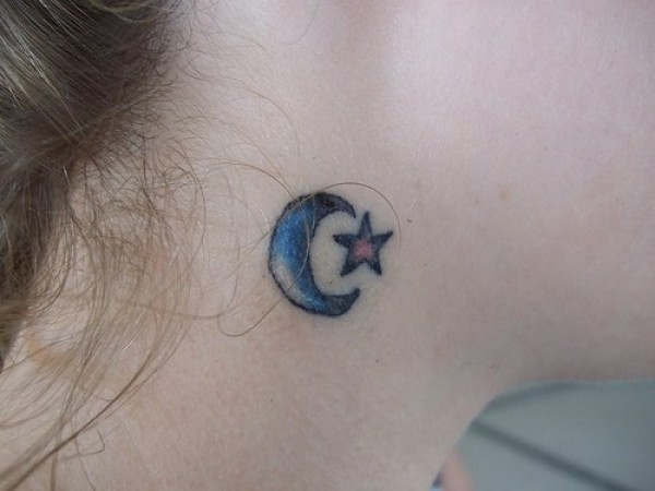 蓝色的小星星和新月颈部纹身图案
