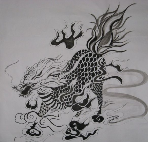 龙纹身手稿_一组老传统黑灰龙手稿纹身图案