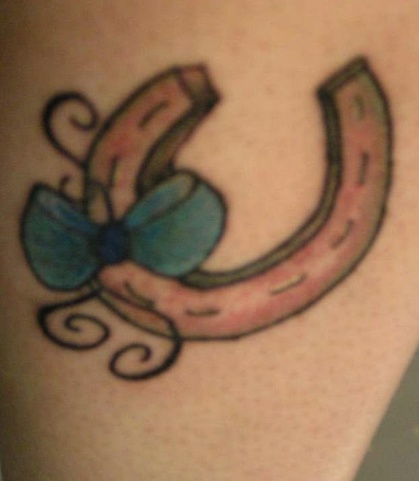 蓝色蝴蝶结和小马蹄铁纹身图案