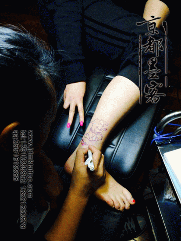 京都墨客纹身作品 女生脚踝小飞象彩色纹身