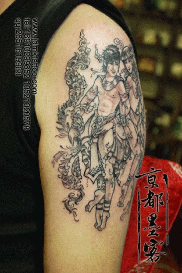 京都墨客纹身作品 男士大臂星座黑白纹身
