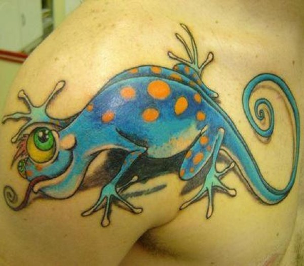 肩部疯狂的蓝变色龙纹身图案