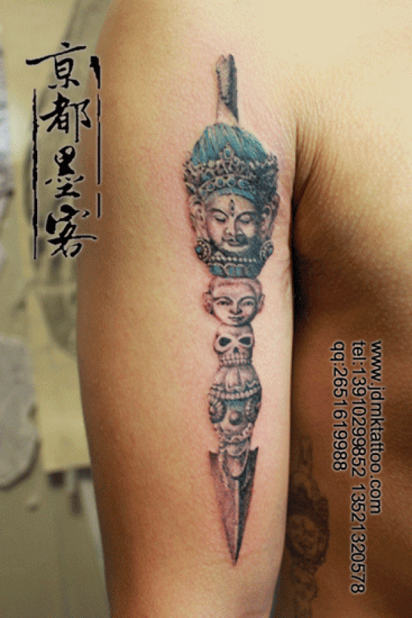 京都墨客纹身作品 大臂降魔杵彩色纹身