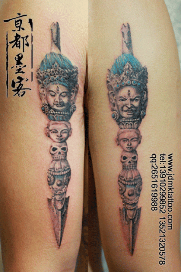 京都墨客纹身作品 大臂降魔杵彩色纹身