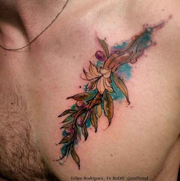 胸部彩色树枝纹身图案