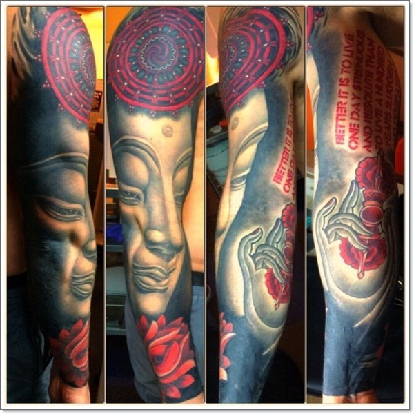 花臂彩绘佛像与莲花纹身图案