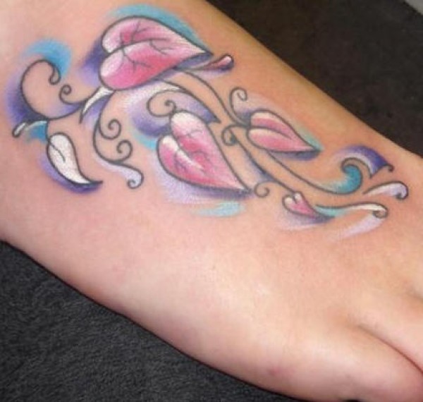 脚背心形树叶和藤蔓纹身图案