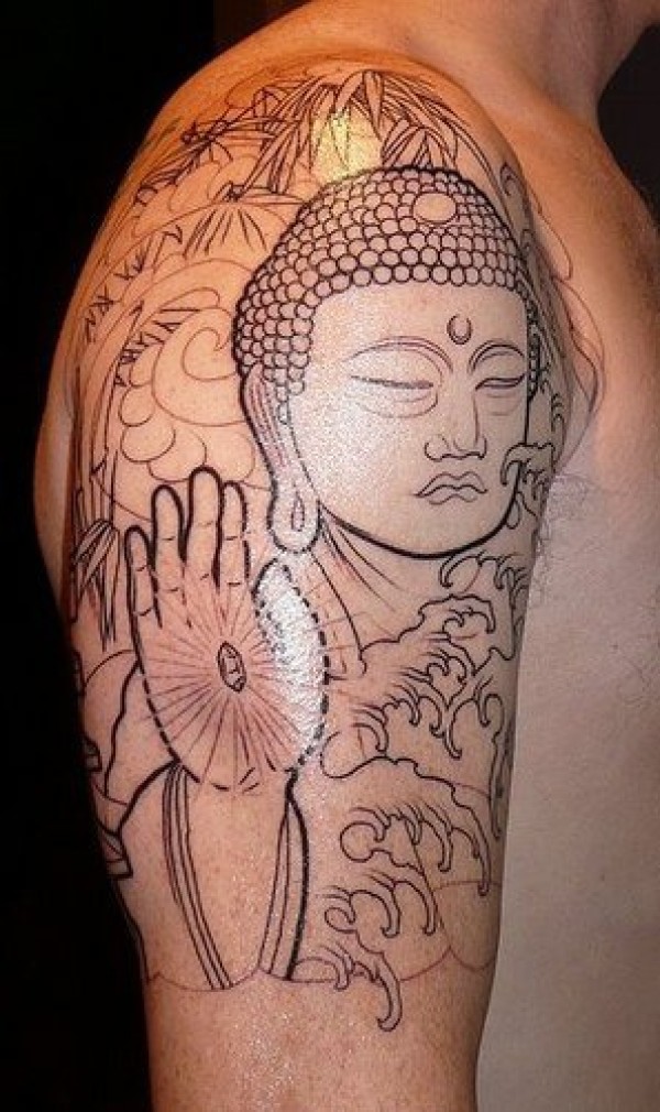 手臂佛像线条纹身图案