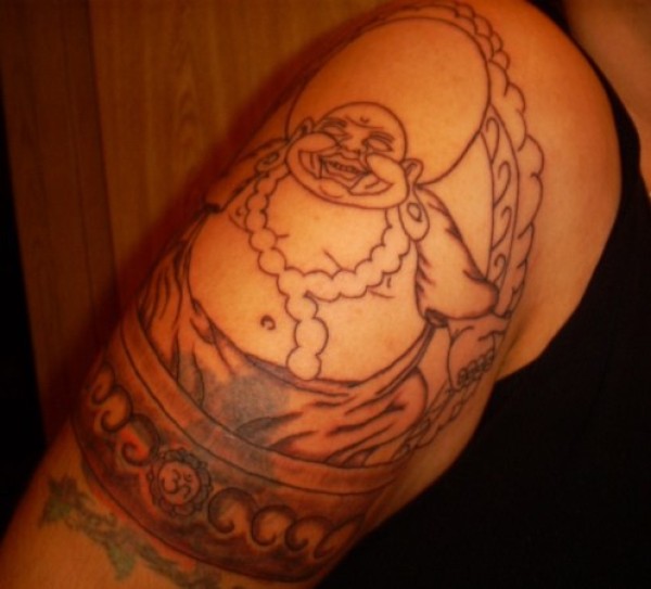 大臂快乐的弥勒佛纹身图案