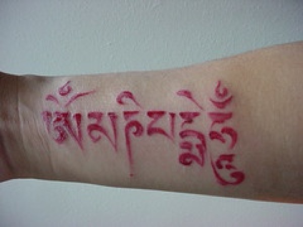 手腕红色印度字符纹身图案