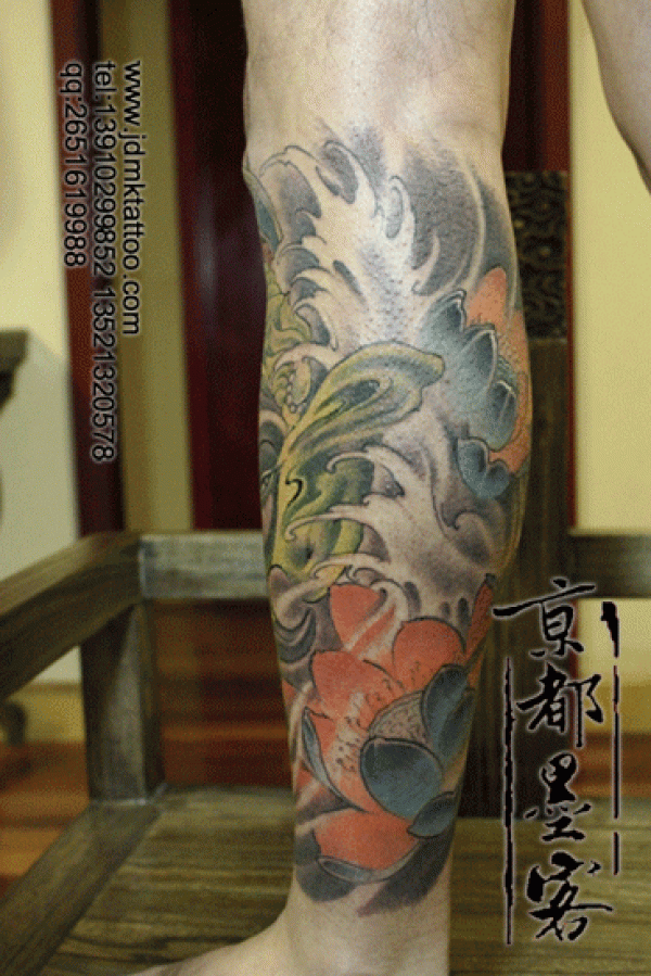 传统鲤鱼花小腿纹身_腿部纹身图案大全_纹身图吧
