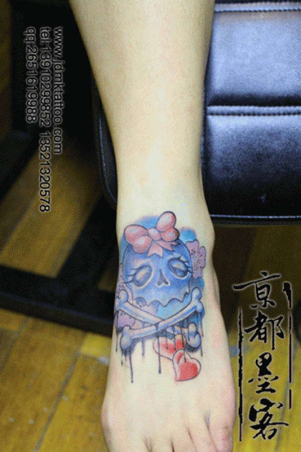 京都墨客纹身作品 new school脚面骷髅头纹身