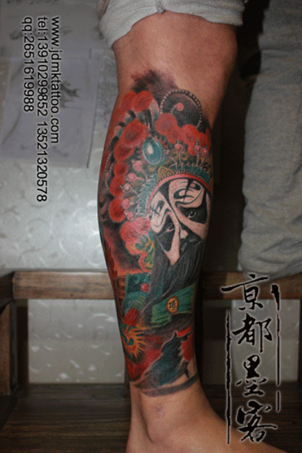 京都墨客纹身作品 霸王别姬彩色包小腿纹身