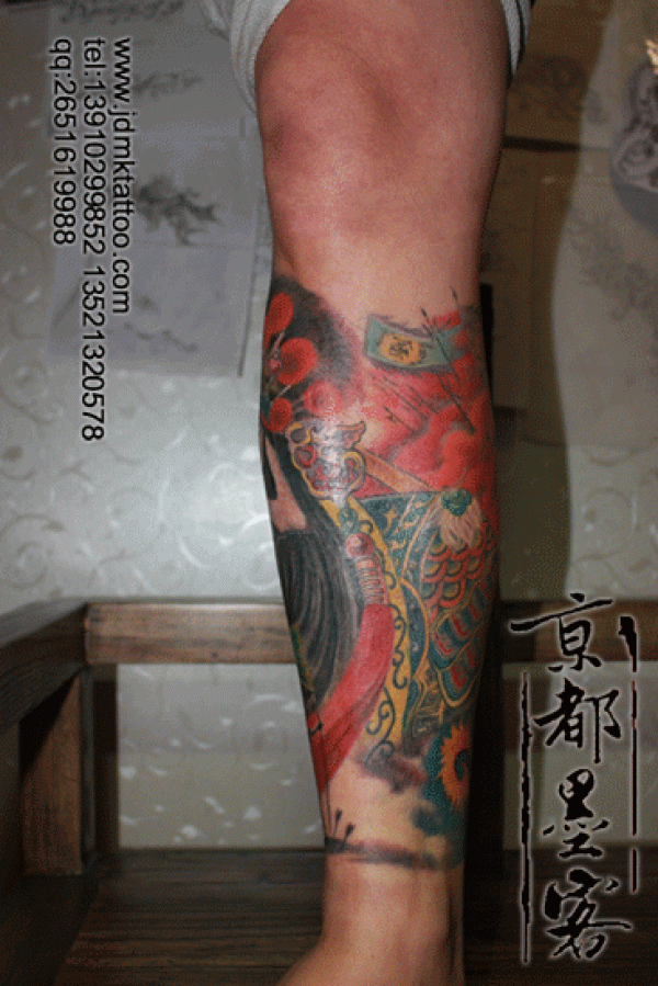 京都墨客纹身作品 霸王别姬彩色包小腿纹身
