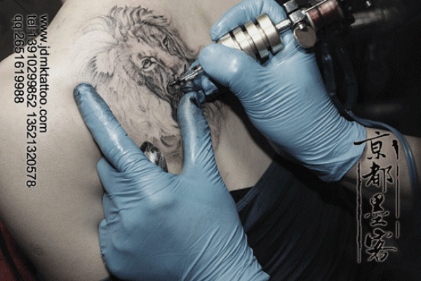京都墨客纹身作品 后背狮子纹身