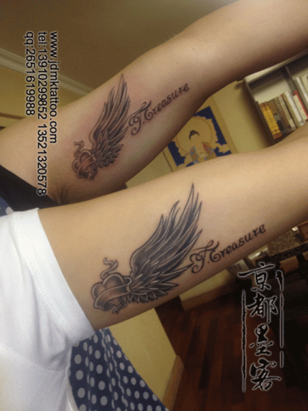 京都墨客纹身作品 情侣翅膀黑白纹身